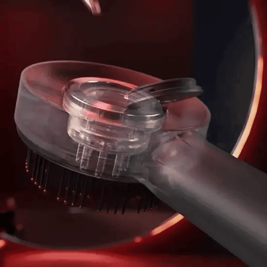 Naciśnij górny przycisk, aby włączyć szczotkę i wybierz preferowaną prędkość masażu. Delikatnie przesuwaj szczotkę po włosach, aby olejek rozprowadził się równomiernie, jednocześnie ciesząc się kojącym masażem skóry głowy.