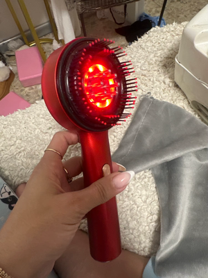 LED rzeczywiście świeci i jest ciepło podczas masażu. Używam 4 miesiące. Włosy gęstsze na przedziałku, nie muszę już układać w ten specjalny sposób żeby zakryć. Polecam 👌