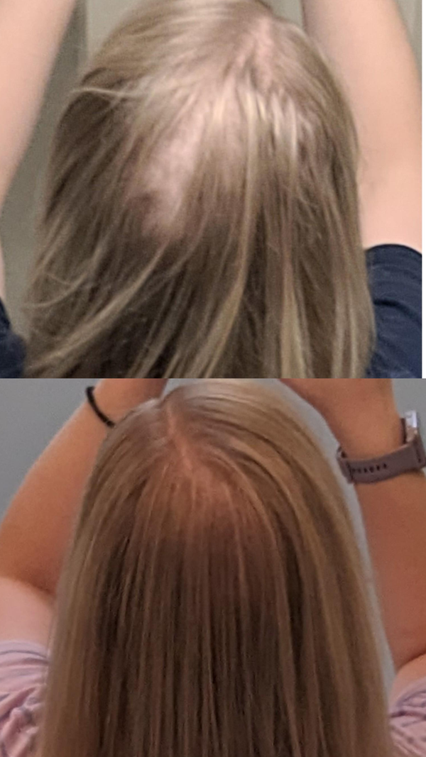 dostrzegło widocznie gęstsze, pełniej wyglądające włosy po 16 tygodniach.