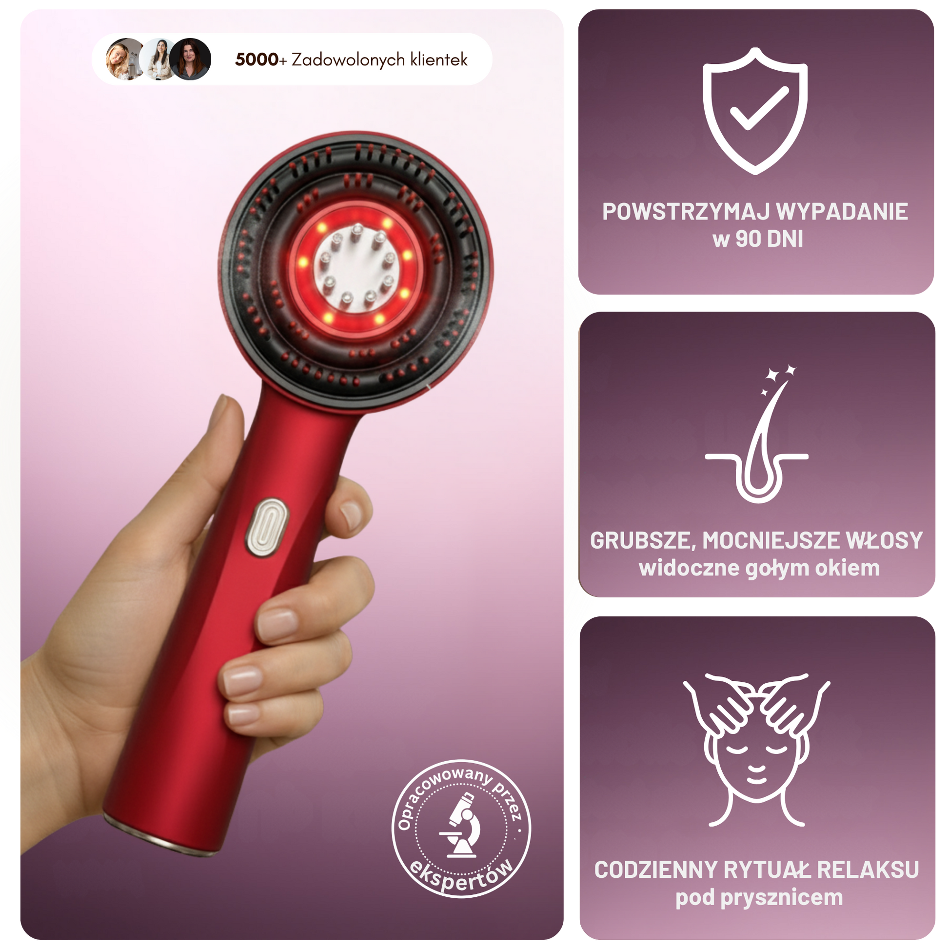 Oznacza to, że Twoje włosy potrzebują technologii, która działa na poziomie komórkowym – takiej, która dociera głębiej niż płyny, skuteczniej niż suplementy i z precyzją, której nie mają tanie masażery.